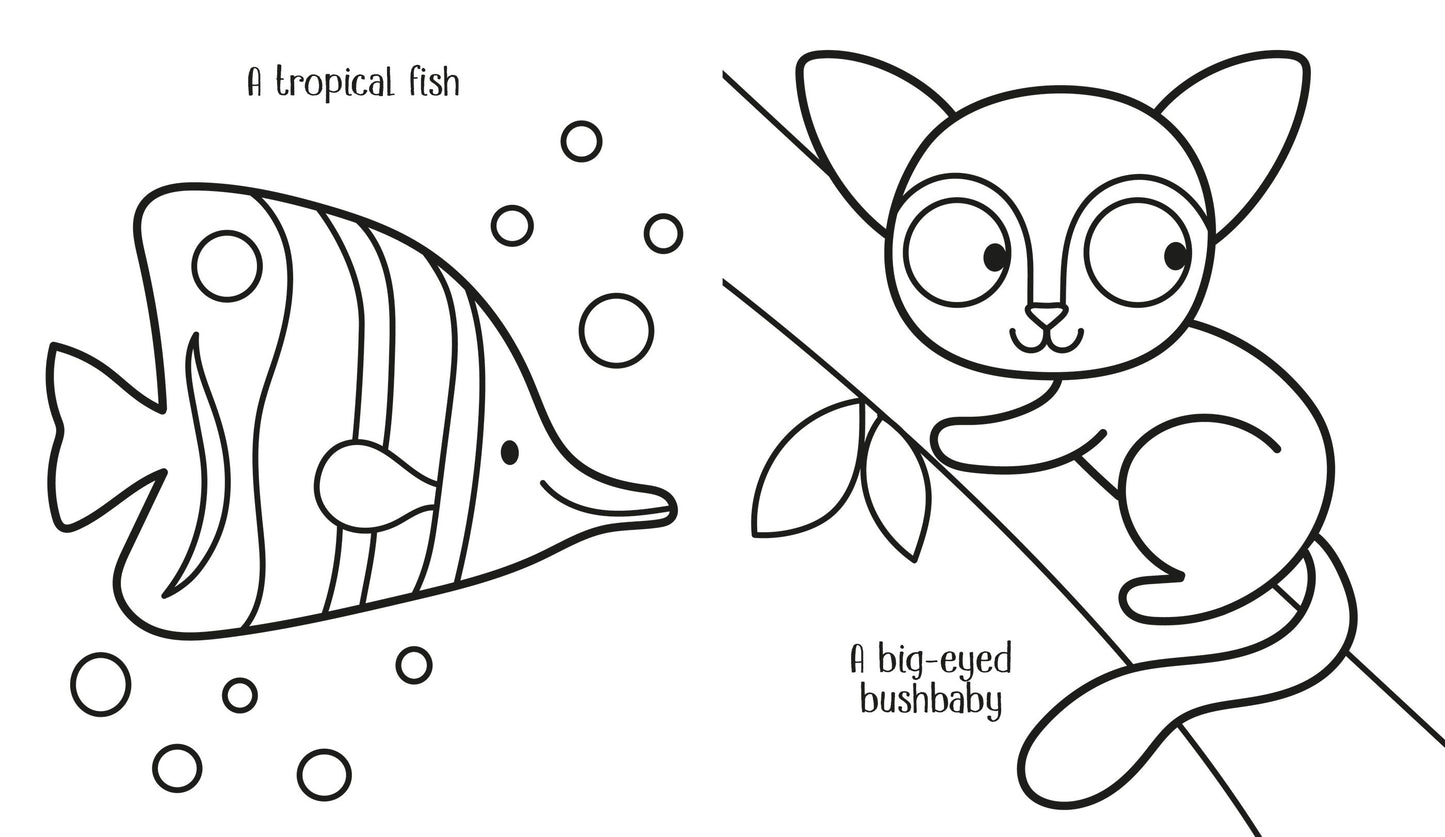This first colouring book is packed with charming illustrations of all kinds of creatures, from zoo animals and pets to birds and bugs.