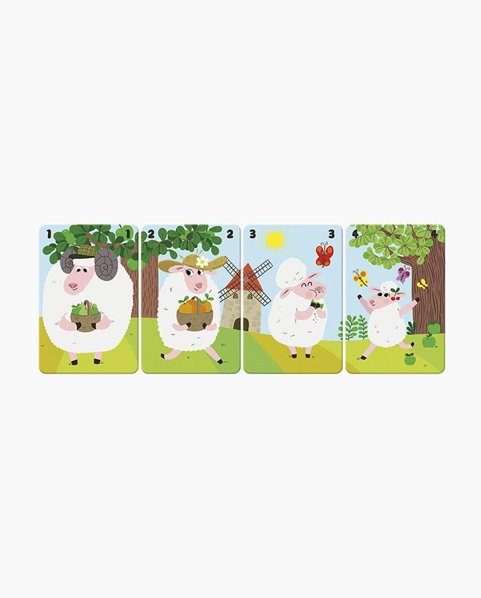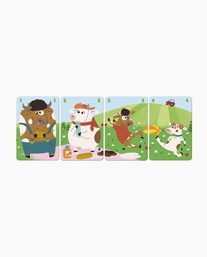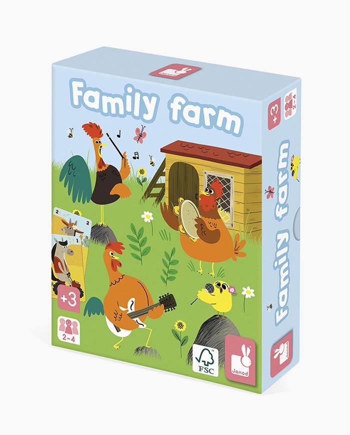 Joc cu 28 de cartonase cu animalutele de la ferma si familiile lor: oi, iepurasi, vacute, porcusori, caluti, vulpi si gaini. Fiecare dintre aceste familii vesele si colorate intr-o culoare distincta are cate 4 personaje, anume pe mama, tata, fiica si fiul.